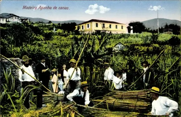 Ak Insel Madeira Portugal, Zuckerrohrernte