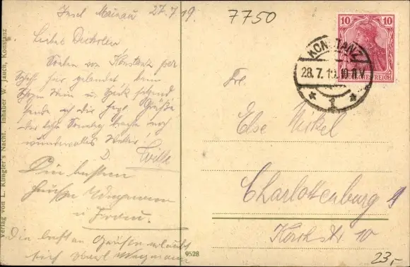 Zustand, siehe Scan, gelaufen, 1919 - ca 14 cm X 9 cm