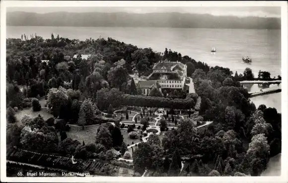 Ak Insel Mainau im Bodensee, Parkanlage, Panorama, Blick von oben