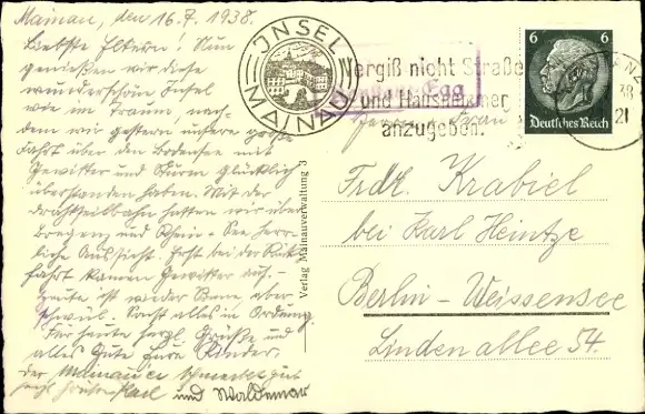Zustand, siehe Scan, gelaufen, 1938 - ca 14 cm X 9 cm