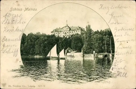 Ak Insel Mainau im Bodensee, Schloss Mainau, Segelboote