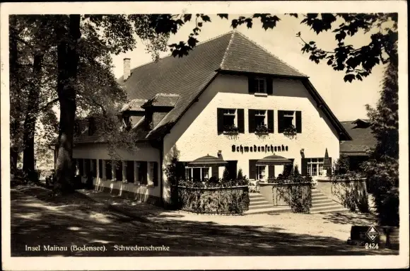 Ak Insel Mainau im Bodensee, Schwedenschenke, Außenansicht