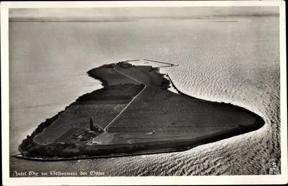 Ak Insel Oie Greifswald, Totalansicht der Insel, Fliegeraufnahme