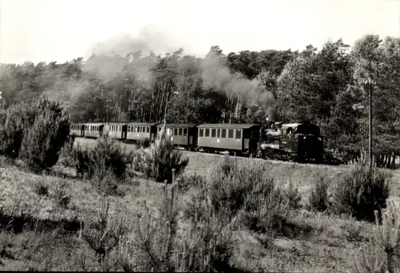Ak Insel Rügen, Schmalspurbahn Rasender Roland, Personenzug zwischen Garftitz und Sellin
