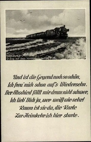 Ak Insel Sylt in Nordfriesland, D-Zug auf dem Hindenburgdamm, Gedicht