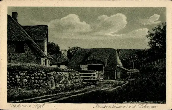 Ak Insel Sylt in Nordfriesland, Friesenhäuser mit Scheune