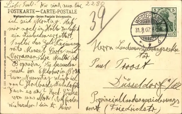 Zustand, siehe Scan, gelaufen, 1907 - ca 14 cm X 9 cm