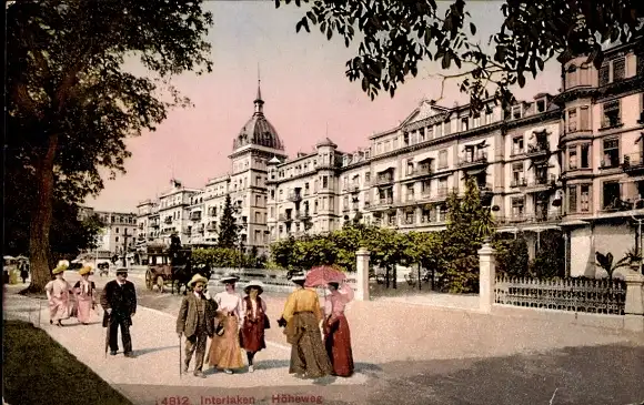 Ak Interlaken Kanton Bern Schweiz, Fußgänger auf dem Höheweg