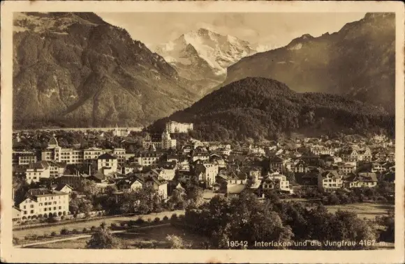 Ak Interlaken Kanton Bern Schweiz, Gesamtansicht, Jungfrau
