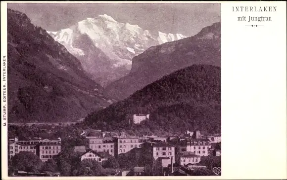 Ak Interlaken Kanton Bern Schweiz, Gesamtansicht mit Jungfrau