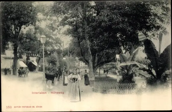 Ak Interlaken Kanton Bern Schweiz, Höhenweg, Frau in Tracht, Kursaal