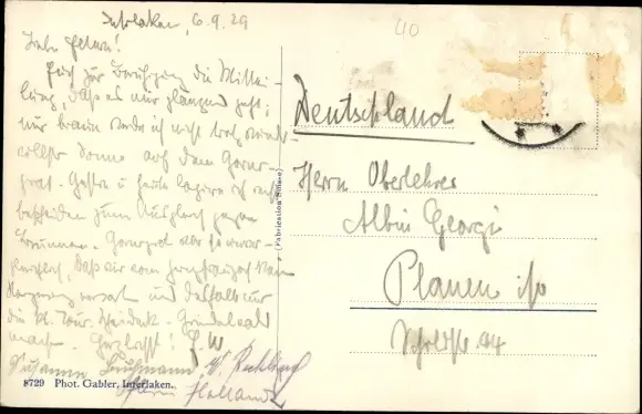 Zustand, siehe Scan, gelaufen, 1929 - ca 14 cm X 9 cm