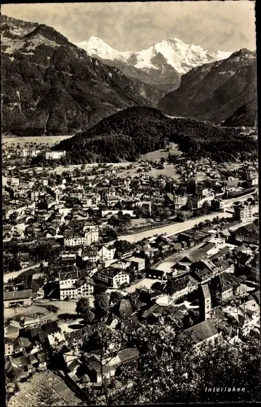 Ak Interlaken Kanton Bern Schweiz, Luftbild vom Ort