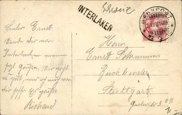 Zustand siehe Scan, gelaufen, 1908 - ca 14 cm X 9 cm