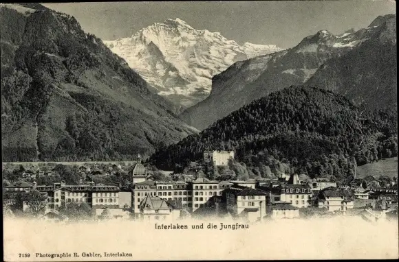 Ak Interlaken Kanton Bern Schweiz, Panorama mit Jungfrau