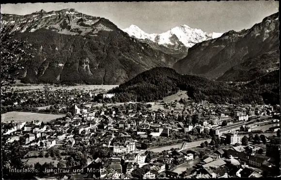 Ak Interlaken Kanton Bern Schweiz, Panorama mit Jungfrau und Mönch