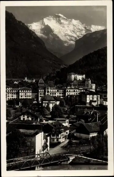 Ak Interlaken Kanton Bern Schweiz, Teilansicht, Jungfrau