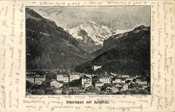 Ak Interlaken Kanton Bern Schweiz, Teilansicht, Jungfrau