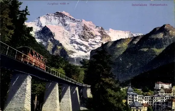 Ak Interlaken Kt. Bern Schweiz, Harderbahn, Jungfrau, Standseilbahn