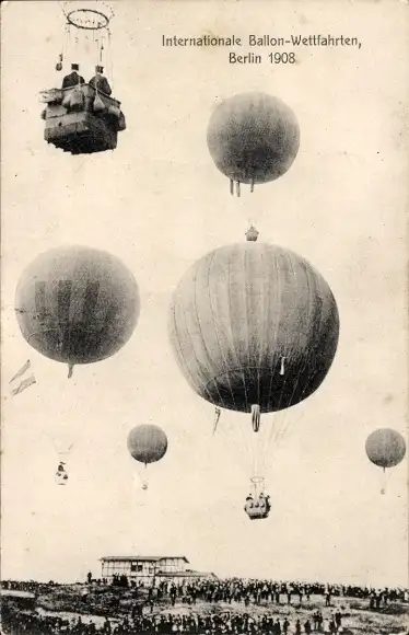Ak Internationale Ballon Wettfahrten Berlin 1908, Ballons, Zuschauer