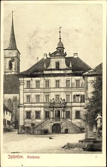 Ak Iphofen, Blick zum Rathaus mit Eingang, Statue