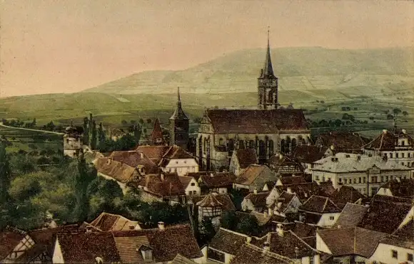 Ak Iphofen in Unterfranken, Farbige Ansicht von Kirche, Hügellandschaft, Häuser