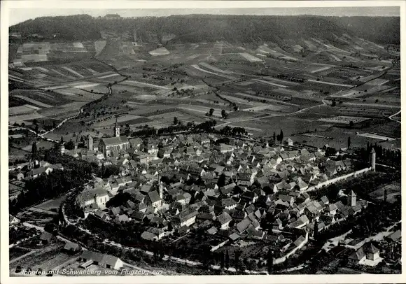 Ak Iphofen in Unterfranken, Fliegeraufnahme, Schwanenberg