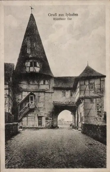 Ak Iphofen in Unterfranken, Rödelseer Tor, Bogen, Fachwerkhaus