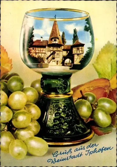 Ak Iphofen in Unterfranken, Weinglas, Weintrauben, Gasthof, Fachwerk