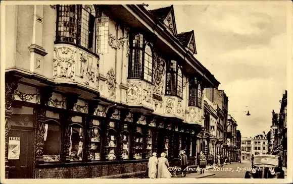 Ak Ipswich England East, The Ancien House, Geschäft, Straßenpartie