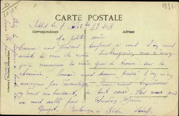 ungelaufen, datiert 1923, Rückseite beschrieben, sehr guter Zustand
