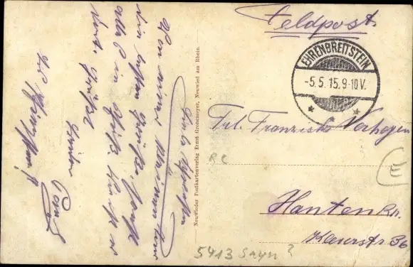 gelaufen 1915, Knickspuren, sonst guter Zustand