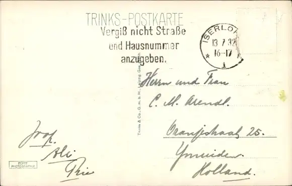 Zustand, siehe Scan, gelaufen, 1932 - ca 14 cm X 9 cm