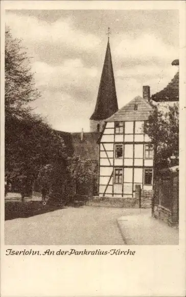 Ak Iserlohn im Märkischen Kreis, An der Pankratiuskirche, Straßenpartie