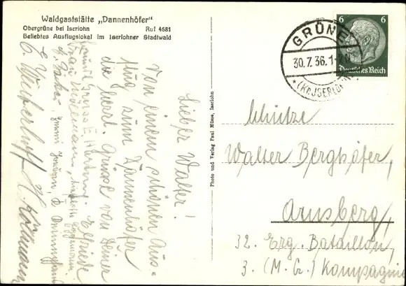 Ak Iserlohn im Märkischen Kreis, Waldgaststätte Dannenhöfer