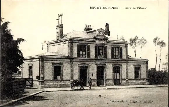 Ak Isigny sur Mer Calvados, Gare de l'Ouest, vue générale