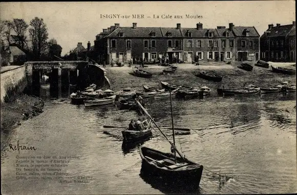 Ak Isigny sur Mer Calvados, La Cale aux Moules, Barques