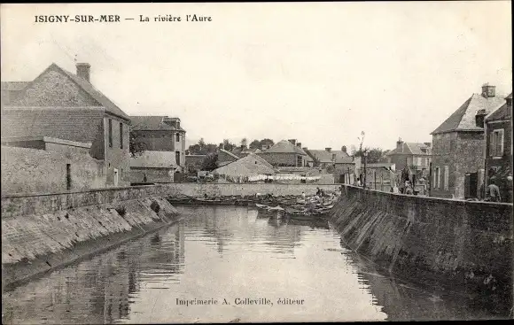 Ak Isigny sur Mer Calvados, La riviere l'Aure