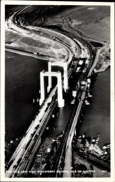 Ak Isle of Sheppey Kent England, alte und neue Kingsferry-Brücken