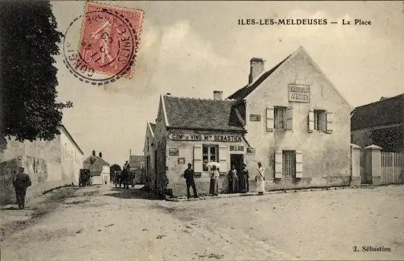 Ak Isles les Meldeuses Seine et Marne, Weingeschäft am Platz