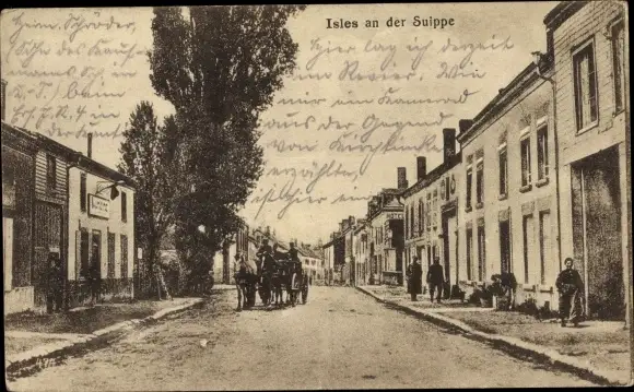 Ak Isles sur Suippe Marne, Straßenpartie im Ort, Anwohner, Pferdekutsche
