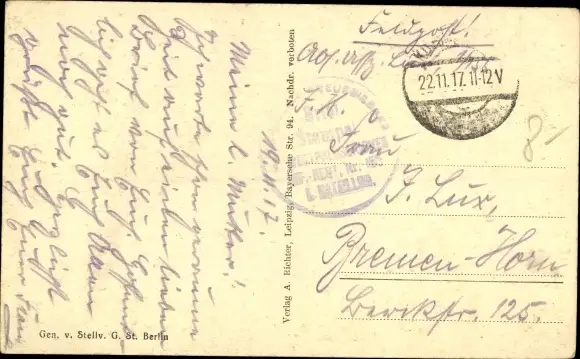Zustand, siehe Scan, gelaufen, 1917 - ca 14 cm X 9 cm