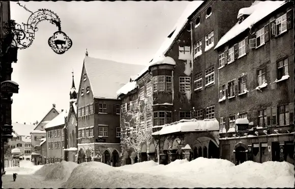 Ak Isny im Allgäu Baden Württemberg, Winteransicht, Straßenpartie beim Rathaus