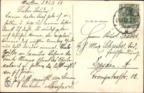 Zustand, siehe Scan, gelaufen, 1908 - ca 14 cm X 9 cm