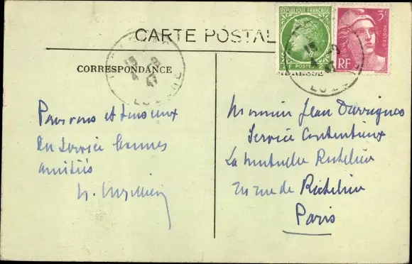 Zustand, siehe Scan, gelaufen, 1947 - ca 14 cm X 9 cm