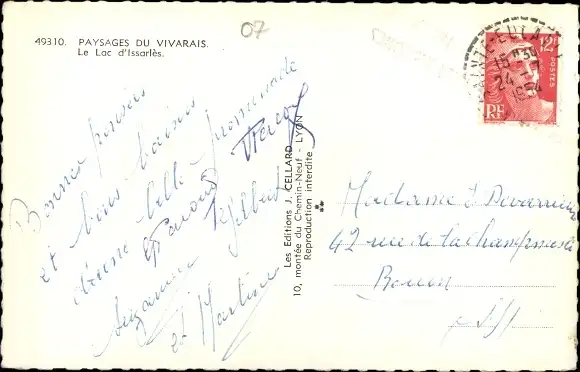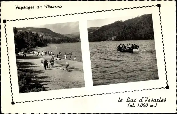 Ak Issarlès Ardèche, See, Ruderboot, Uferspaziergänger