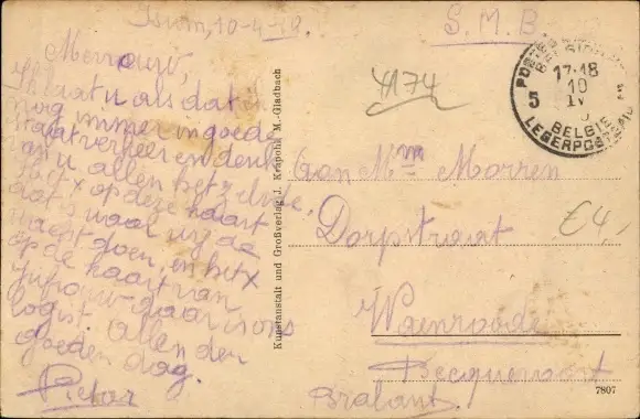 Zustand, siehe Scan, gelaufen, 1919 - ca 14 cm X 9 cm