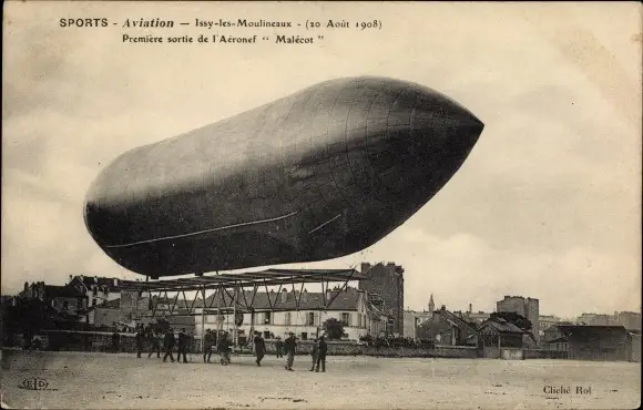 Ak Issy les Moulineaux, Erstflug der Aeronef Malecot, 1908