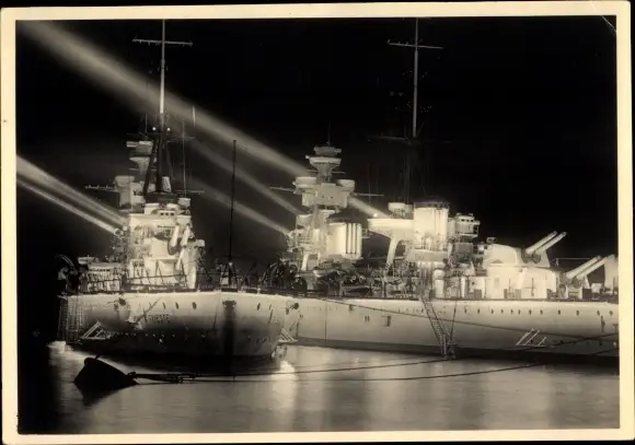 Ak Italienisches Kriegsschiff, R. Marina Italiana, Scheinwerfer