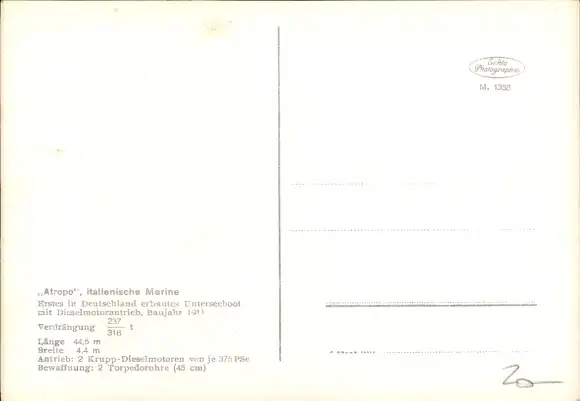 Ak Italienisches Kriegsschiff, U-Boot Atropo, Krupp-Germaniawerft Kiel